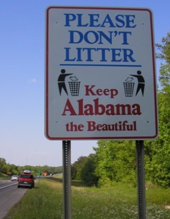 ALDOT signs remind citizens as they travel on Alabama’s highways to “Keep Alabama the Beautiful” by not littering. ALDOT’s rest areas and welcome centers have convenient receptacles where motorists can properly dispose of trash. Also, ALDOT, in partnership with the Alabama Law Enforcement Agency and other organizations, produces public service announcements (like this video) reminding citizens that “trash costs cash.” That is, littering can mean large fines for motorists.